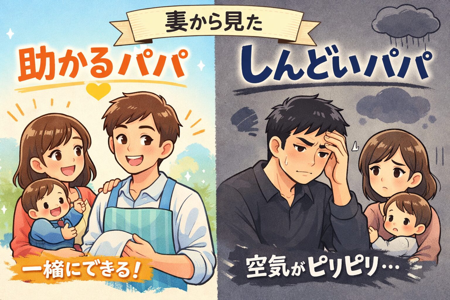 この記事では、妻から見た「助かるパパ」と「しんどいパパ」の違いを、実体験を交えて書いてみます。